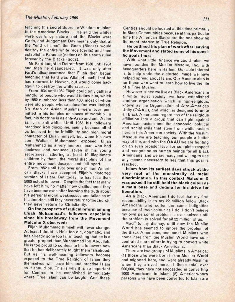 • His disappointment with the efforts of some Muslims who tried to share the message of Islam more with whites instead of focusing on the black community, which statistically showed more receptiveness to the teachings of Sunni Islam.