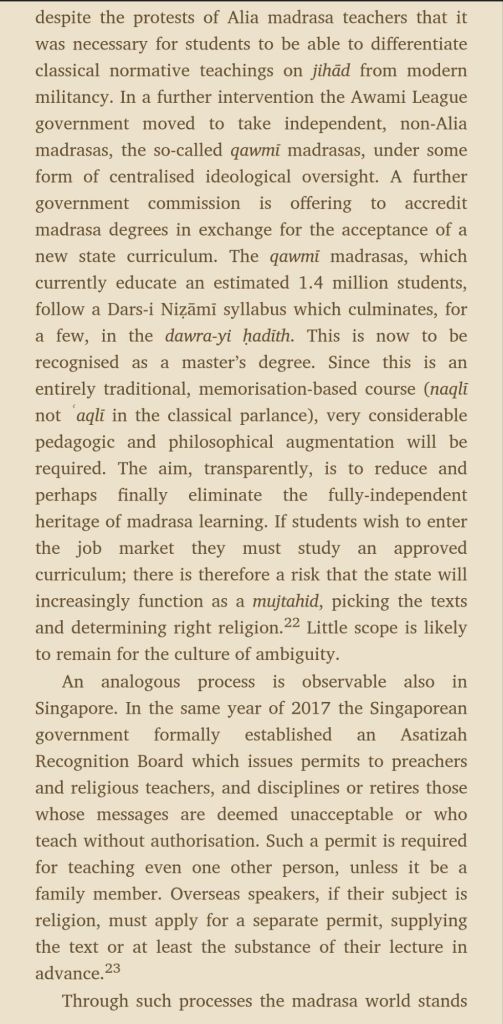 Sh Abdul Hakim Murad on why it’s always foolish for modern Governments to push 1 interpretation of Islam wether Salafi or Sufi. Goverments shouldn’t act as the Mujtahid that elects what is “correct” religion