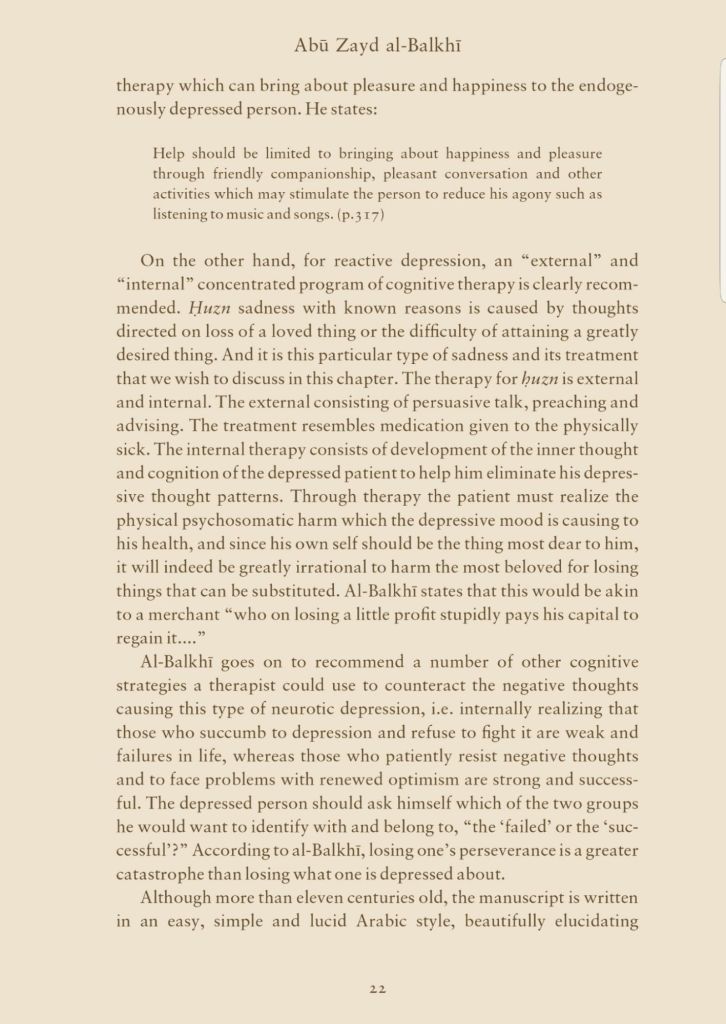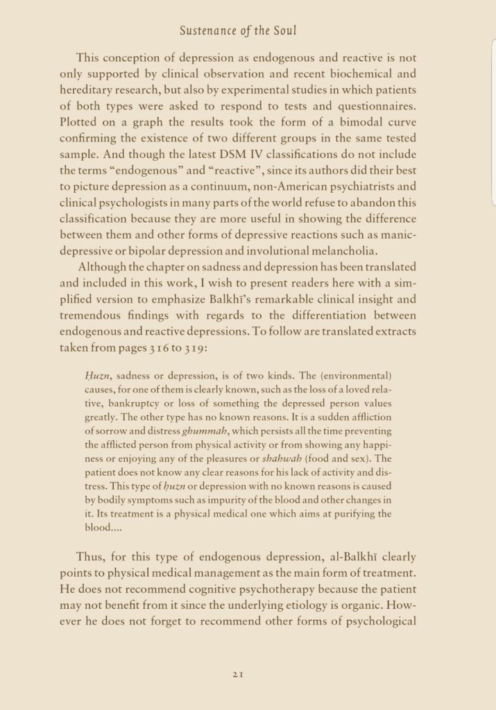Abu Zayd al-Balkhi in his book “Sustenance of the Soul”writes about 2 types of sadness that afflict the human being.